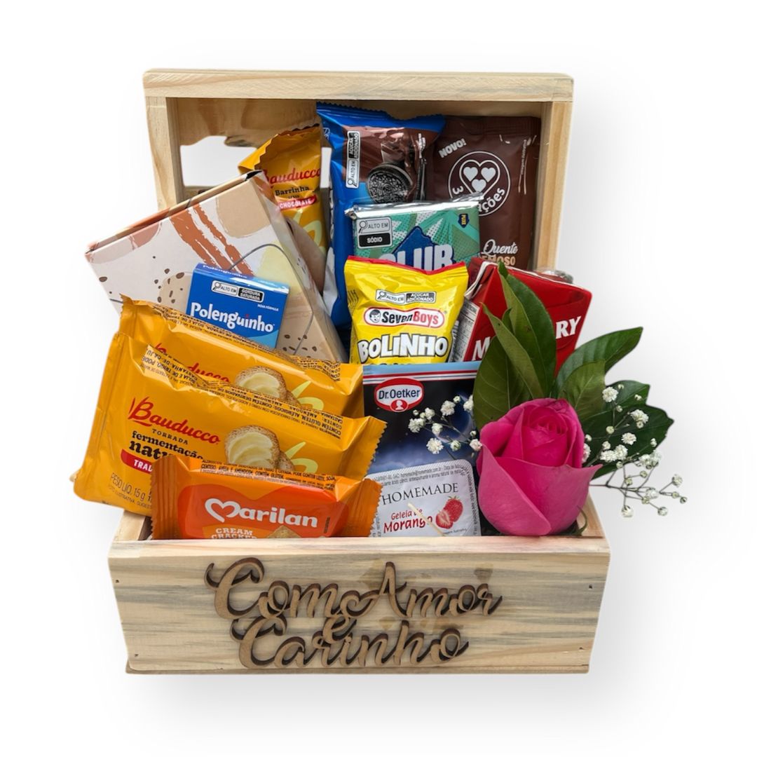 A Cesta de Café da Manhã Amanhecer, montada em um elegante bauzinho de madeira, é perfeita para iluminar o dia de alguém especial e transmitir carinho logo nas primeiras horas do dia. ☀️